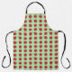 Great color and even though I ordered the kid size, it covers well enough to use during the holidays. I am not a big woman and prefer a shorter apron. I stand 5"6" and the length of the garment goes to mid-thigh. The tie straps fit well at my waist and even though there is no neck strap adjustment, the opening is plenty big enough. I am happy with the size and fit. I am sharing my apron with my 10 year old grandson, too! The color is vibrant and looks good, as shown on the website. The stitching looks strong and reinforced. Photographed is front side and back side of the apron, reinforced straps and coloring. My phone camera may not be the best at showing the details.