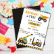 Simple cute construction truck kids 2nd birthday invitation