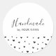 This modern handmade/homemade package sticker features a cute heart pattern with custom text. You can personalize the text with your business information. This simple sticker will add a special touch to your product packaging.