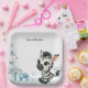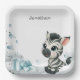 Cute baby shower or birthday paper plate featuring adorable little male zebra with some blue love hearts