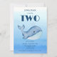 Simple Cute Whale Blue Sea 2nd Birthday Invitation