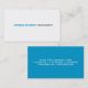 If clean and modern is your style, why junk up a card with complicated patterns or imagery that says nothing about your business? Simple, yet elegant type is the focus of this card with a bright cyan blue for accent. Available in alternate colors.