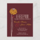 These wedding reception cards can be used as invitations or insert cards, featuring tall, beautiful dahlias with a delightful abundance of petals on slender, stately stalks, in shades of deep red, rustic cream, and autumn orange against a textured, earthy brown felt background. The reception insert wording is completely customizable; in alternating script wedding font, classic block lettering, and a tall modern accent font.