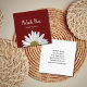 Simple boho event planner business card, with a white daisy image on a red burgundy background. With customizable typography lettering, you add your own text. Great for getting the word out about your business!