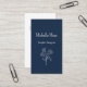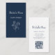QR code Navy Blue Botanical floral business card, with a simple daisy design. With customizable white and navy blue lettering, you can add your own information. You add your website to the QR code field for your customers to scan. Great for promoting your design business with a professional and feminine style.