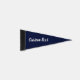 This dark blue pennant has text in a white script. The text can be edited or deleted.