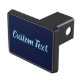 You can edit the light blue script to show your custom message. The trailer hitch cover is dark midnight blue.