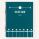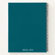 A turqouise notebook with a simple floral design.