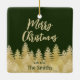 Simple Dark Green Gold Pine Trees Merry Christmas Ceramic Ornament