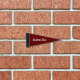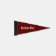 This dark red pennant has text in white script. Text can be edited or deleted.