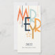 This modern era card features a colorful art deco style font with abstract ornaments in orange navy and aqua with placeholders for any name and year.