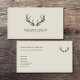 A simple business card with an elegant deer antlers illustration on a cream-colored background, with deep forest green texts. The design balances rustic natural imagery with contemporary design principles, perfect for outdoor, taxidermist, hunting, outdoor-related activities, or nature-based businesses.