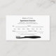 A professional dental appointment reminder business card in black and white featuring a simple toothbrush design.