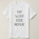 A white t-shirt with the phrase "Eat Sleep Code Repeat" printed on it is the perfect addition to any coder or programmer's wardrobe. The simple yet clever slogan highlights the dedication and passion that goes into the work of coding, reminding wearers that it's not just a job, but a way of life.
