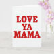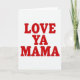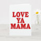 This card features the words “LOVE YA MAMA” right in the center, in large uppercase letters. The letters are a deep red and have a slightly worn look, with tiny white specks and rough edges that make them feel like an old printed tee. The background is plain white, so your eyes go straight to the message without any distractions. The lettering is simple and thick, and the red color stands out strongly against the white. It feels like an honest, straight-from-the-heart note that’s easy to mean when you give it. The little scuffed details add a sense of familiarity, like something you’ve held onto for years because it matters. It’s a sweet way to show love and appreciation, whether it’s from a kid or an adult, and it comes across with real warmth 🥰❤️. Hope it helps you share your Valentine’s Day feelings in a kind, caring way.