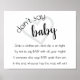 Simple horizontal "Don't say baby" baby shower or gender reveal game table signage featuring a fun, casual hand-lettered script. The classic design includes a modern handlettered quote typography overlay. The lovely font with a customizable background color makes it easy to fit any theme. For other colors or matching products, please visit the JustFharryn Zazzle store, or contact the designer, c/o fharryn@yahoo.com All rights reserved. #zazzlemade