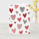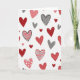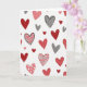 This design shows a white background covered with many hearts scattered across the front in a relaxed, floating pattern. The hearts are mostly red and blush pink, with a few gray accents that add a calm, modern touch. Some hearts are solid, while others have white polka dots, soft gray stripes, or thin black outlines that look like quick pen lines. A few hearts have slightly uneven edges, which makes the whole scene feel more human and close. There isn’t any text on the card, so the heart pattern does all the talking and leaves plenty of room for your own words inside. It feels meaningful to give because it’s simple, warm, and reminds someone that love and friendship show up in lots of small ways 🥰. Share it to help pass along Valentine’s Day feelings with care and ❤️.