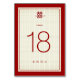 Minimalist chinese double happiness symbol and simple double happiness pattern in red / ivory within a classic frame, wedding table number card.