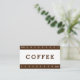 Coffee is a brewed beverage with a bitter flavor prepared from the roasted seeds of the coffee plant. The beans are found in coffee cherries, which grow on trees cultivated in over 70 countries, primarily in equatorial Latin America, Southeast Asia, South Asia and Africa. Green (unroasted) coffee is one of the most traded agricultural commodities in the world. Great for a casual coffee house or espresso drive-thru or even a cafe that serves lattes and mochas and cappuccinos. Change the numbers if you like to offer a free drink after fewer (or more) visits. Keep your customers coming back for more of your specialty, high-quality coffee drinks!