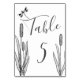 Simple Dragonfly and Cattails Black White Wedding Table Number