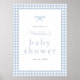 Simple Dusty Blue Gingham Boys Baby Shower Welcome Poster
