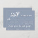 This suite's distinction is due to the modern, handwritten script font used for accent phrases. In this piece, the hand-lettered script font was used to create graphics depicting the words "rsvp", "m", and "menu choice for each guest:". Use the template fields to add your personal details and make this unique, modern design your own. The dusty blue background can be changed to any color you prefer. Please reach out with any special requests or for customizing assistance. // 100 //