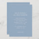 Plain white envelopes are included with paper invitations and will come to fit the invitation size you select. If you don’t need the envelopes, you may choose to not receive them by selecting the dropdown below "Envelopes" and choosing "None." If you’d like to have a design on your envelopes, you can browse all of these available envelopes to find the design that complements your Simple Dusty Blue Modern Wedding Invitation.