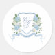 Simple Dusty Blue Monogram Crest Wedding Classic Round Sticker