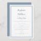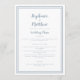 Simple, minimalist and elegant Wedding Menu features a contemporary design with a double frame border in dusty blue on a crisp white background. Traditional wording provides timeless yet modern sophistication. Personalize wedding design with your menu details in delicate dusty blue lettering and script. The back of the card matches in solid dusty blue.