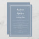 Simple, minimalist and elegant Wedding Menu features a contemporary design with a double frame border in crisp white on a trendy DUSTY BLUE background. Traditional wording provides timeless yet modern sophistication. Personalize wedding design with your menu details in white lettering and script. The back of the card matches in DUSTY BLUE.