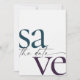 These 5" x 7" save the date cards feature a minimalist design in eggplant purple, teal and dark gray letters with placeholders on the back for the engaged couple names, wedding date, and venue information and your favorite photo!