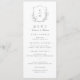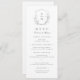 Monogrammed initials framed by elegant crest and hand illustrated botanical leaves, menu details in elegant script and classic font, simple and luxury. Great black and white menu for modern classic wedding, simple formal wedding, elegant botanical garden wedding.