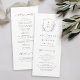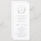 Monogrammed initials framed by elegant crest and hand illustrated botanical leaves, your event details in elegant script and classic font, simple and luxury. Great black and white programs for modern classic wedding, simple formal wedding, elegant botanical garden wedding.