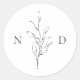 Rustic hand illustrated botanical leaves wreath in black and white, simple and elegant, great wedding favor stickers for summer boho rustic wedding, spring botanical garden wedding.