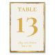 This elegant table card is beautiful. The design features a thin and minimalist uneven golden edge with golden typography for customizable details. Off white background.