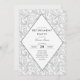 This simple yet elegant design features a light grey floral swirl pattern in the background with party details inside of a modern diamond design. All text fields are customizable - invitation can be used for any occasion.