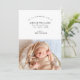 This lovely elegant new baby arrival announcement and thank you card features two photos (one on each side) and classic typography. On the front, there is a cute newborn baby announcement including an introduction message, a name, date of birth, height, and weight. The bottom part is featuring the horizontal photo. The back of back features a thank you message (you can use it to thank about baby shower gifts, and the care and attention you´ve got during pregnancy). There is also a second horizontal photo. To customize this card, simply click on the ´´Personalize´´ button and change all details, including photos, to your own.