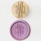Before the wax hardens, gently and evenly press the wax seal stamp into the melted wax, ensuring it's centered.