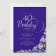 Simple Elegant 40th Birthday Purple Silver Roses Invitation
