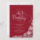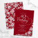 Simple Elegant 40th Birthday Red Silver Roses Invitation