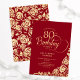 Simple Elegant 80th Birthday Red Gold Roses Invitation