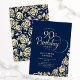 Simple Elegant 90th Birthday Navy Gold Roses Invitation