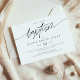 Plain white envelopes are included with paper invitations and will come to fit the invitation size you select. If you don’t need the envelopes, you may choose to not receive them by selecting the dropdown below "Envelopes" and choosing "None." If you’d like to have a design on your envelopes, you can browse all of these available envelopes to find the design that complements your Simple Elegant Baptism Christening Script Invitation.