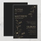 A simple elegant modern black and gold floral wedding invitation is perfect for any classy and sophisticated ceremony. This exquisite elegant dazzling gold floral frame girly design is perfect for the trendy and stylish couple. Customize this design with your own message and personalized information. All designs are printed.