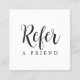 Simple square black and white referral card for beauty related professionals. Simple clean design, fully customizable.