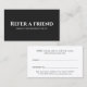 Simple black and white referral card for beauty related professionals. Simple customizable card.
