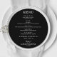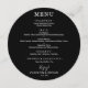 A round dinner menu card on black (or any color) and chic lettering in white displays your menu choices. Perfect for a modern wedding reception, wedding rehearsal dinner, anniversary party or any special event with a sit down dinner. Choose ANY COLOR BACKGROUND, any COLOR TEXT, any FONT! Easily personalize with your dinner menu and details.