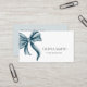 Cute and elegant business card with a blue bow on one side and a QR code on the back of the card. Illustrated and designed by Patricia Alvarez.