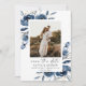Simple Elegant Blue Floral Script & Photo Wedding Save The Date