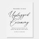 Request that friends and family stow away their phones at your wedding ceremony with this modern 'unplugged ceremony' sign, featuring an elegant script and minimalist black and white design.